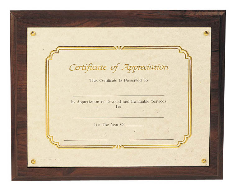 Recessed Certificate Plaques - 10 1/2" x 13"